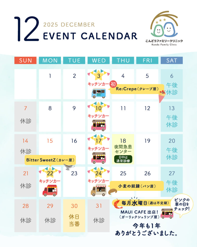 2025年12月29日(月)~2026年1月4日(日)まで、年末年始休みになります。